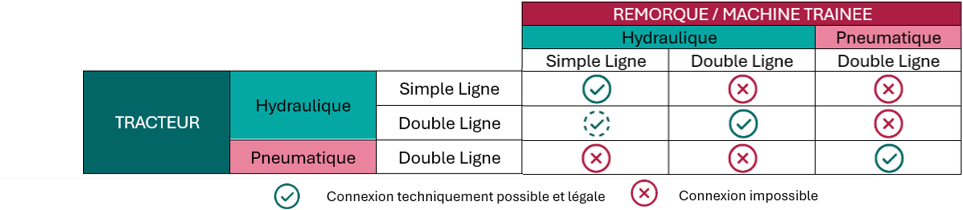 - Conformité actuelle ! Nos matériels avec freinage hydraulique simple ligne vendus avant le 1er janvier 2025 respectent les normes en vigueur et pourront toujours être utilisés sans date limite sur un tracteur avec freinage adéquat.